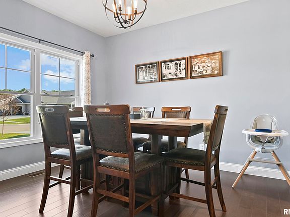 A warm welcome awaits you in this impressive attached ranch home in Oak Park Estates. A stunning exterior is dressed to impress in contemporary color schemes, lovely landscapes & equally attractive views in any direction. The bright & inviting foyer entry sets the scene with authentic hardwood flooring accented by elegant fixtures & finishes throughout. You'll find a delightful dining room with a formal feel leads to a fabulous kitchen & family room ensemble. This space offers an abundance of natural light with bright white cabinetry & high end stainless appliances accompanied by a gorgeous floor to ceiling fireplace focal point & huge center island. From there you'll find a drop sink equipped laundry room that doubles as mudroom, guest's full bath & the second bedroom. Also on the main floor an extravagant master suite boasts full bathroom with dual vanity, walk in closet AND secondary standard closet. Downstairs you'll find a finished family room with endless possibilities plus the 3rd bedroom & 3rd full bathroom. This fantastic home has a trendy feel & it's totally move in ready, but the prime location is a true cherry on top. Oak Park Estates offers access to the well known Sangamon Valley Bike Trail & this gorgeous lot backs directly to it. Must see this like new, beautiful home!