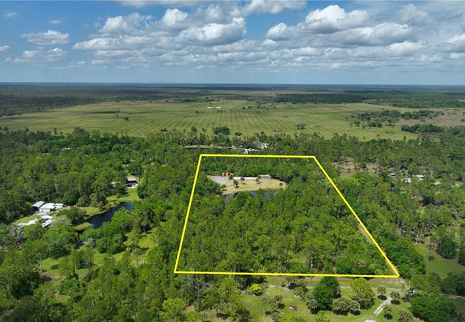 Escape to your own private sanctuary located in NW area of Muse Community in SW Florida! This 10.08-acre property offers the perfect blend of tranquility and opportunity. Whether you want to build your dream home or start an agricultural venture. This secluded retreat provides a large pond, completely fenced and a secure gated entrance. The property is mostly wooded with a cleared area which offers an existing 40 x 80 concrete slab, along with access to electricity and pre-existing septic and well. Out of the FEMA flood zone area plus property may qualify for ag exemption tax savings if the property is used for agricultural use. Don't miss this opportunity.