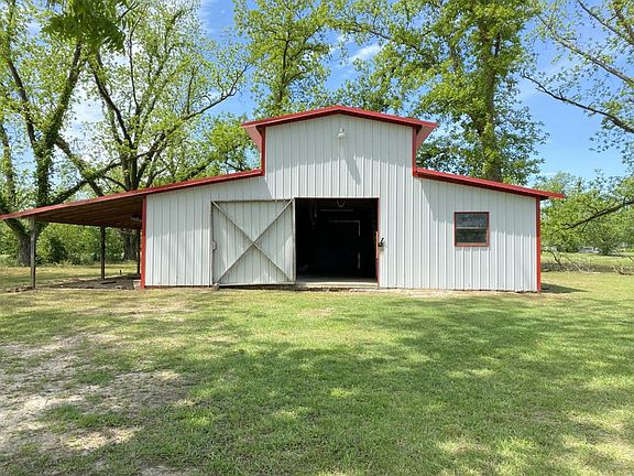 QUIET COUNTRY LIVING~ 15.31 ACRES~ 3 STALL HORSE BARN~ MODERN HOME WITH OPEN FLOOR PLAN~ Beautiful Home nestled way back off of the road with a long driveway lined with pecan trees! Rocking Chair Front Porch that expands across the front of the house! Walk In and be WOWED... Totally open floor plan complete with all tiled floors! Spacious living room had a brick wood burning fireplace with a raised hearth! Gorgeous Kitchen features a huge island with accents of brick on the back side and granite counter tops, breakfast bar, loads of closet space, stainless appliances, window over the sink, pantry and large dining area that have french doors to the patio! Master Suite has a walk in closet and private bathroom! the additional 2 bedrooms are spacious with ample closet space! Second bathroom is updated! Fresh Paint throughout most of the house! Awesome laundry room with loads of storage! Outside has a covered back porch perfect for grilling and entertaining! Carport! Storage building! Metal Roof! The barn has new siding and metal roof in recent years, is wired and consists of 1300 sqft plus a huge lean to area, 3 stalls, work space, water, upstairs open loft area! This home is perfect for anyone wanting a place for horses, a mini farm or just room to roam! This is your opportunity to own a beautiful home and land for complete privacy and country living only 15 mins to shopping and dining!