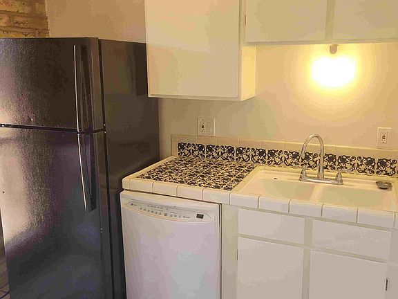 Apartment has a dishwasher, electric stove and a medium sized fridge. There is a small backyard that can be accessed via a sliding door in the large bedroom. Central AC and heat. Tiled throughout. Complex has a pool, laundry and parking lot. Very close to restaurants and shops on Campbell and Fort Lowell. Owner: Pays for water and garbage. Tenant: Pays for electric, gas and internet.