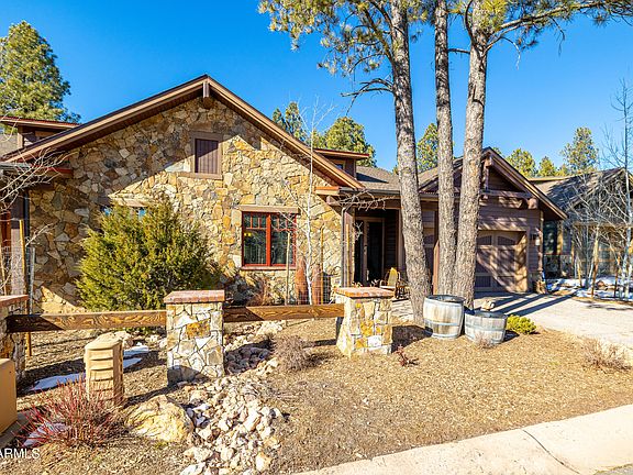 This gorgeous townhouse sits nestled in the high country of Flagstaff at 7,000 feet elevation, inside the beautiful and desirable Pine Canyon private-gated golf community. This cozy townhome delivers 4BR/3.5BA 3,143 square feet. Turn-Key lock and leave. Relax and enjoy the scenery off 2 National Forest-view decks in this tranquil environment. Features include Home Savant System, 12 TV's (including 3-TV wall in family room), custom bar, upgraded appliance package, 3-panel collapsible doors with built-in screen for unobstructed views to forest. Enhanced landscaping, extended downstairs patio, 24-hour water leak detection system, heat tape strips, 2-car garage with EV Plug & epoxy floors, wood-burning fireplace, upgraded BBQ, window covering package, metal security door/screen and much more!