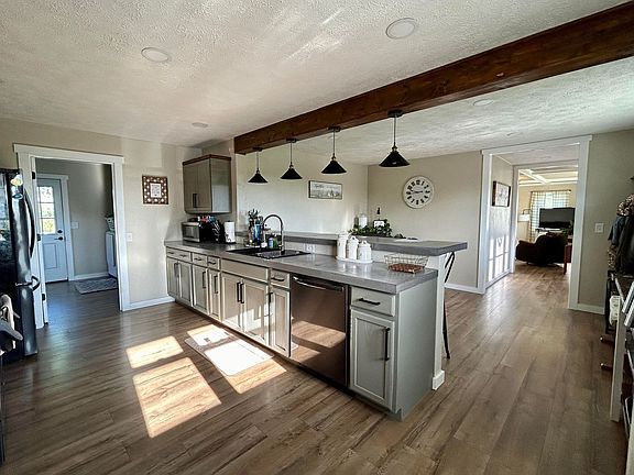Welcome to this updated 4-bedroom 2bath home sitting on .5 of an acre in Ava Mo. Upon entering the home there is a cute patio you can sit on an enjoy the view. The home features a comfortable living area with white ceiling beams and large windows with a beautiful view. Just down the hall are 3 bedrooms and one bath. In the kitchen you will find a beautiful celling beam with hanging lights, concrete countertops with a breakfast bar, and room for a dining table. East facing windows give this kitchen/dining room ample light. Just off the kitchen is a utility room which leads into the back yard where there is a small fenced in area. Perfect for pets, a swing set for the kids, or a garden. The large master bedroom is tucked away from the other rooms in the home. It features a large walk-in closet, and a private bathroom. Step out of your room onto the back porch with privacy blocking for a peaceful cup of coffee. You are still in city limits with the convince of city water and sewer, but have a view of the countryside! Taxes are less than $500 a year