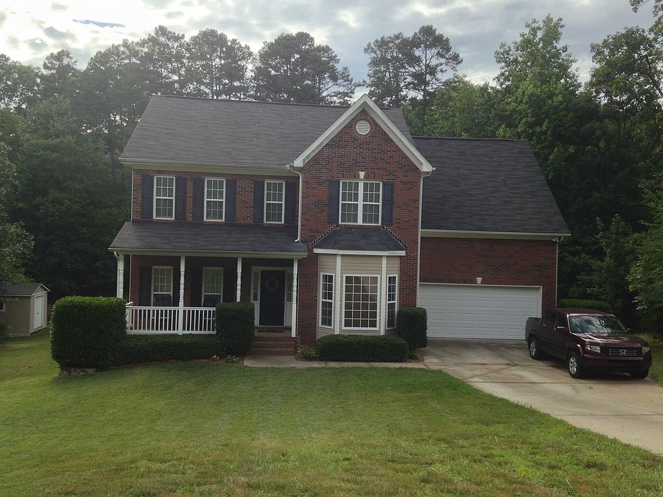 What A Buy! 5BR/3.5BA featuring Open kitchen with tons of cabinet and counter space. Kitchen island, breakfast area overlooking beautiful Screened in porch, Patio, Fire pit and large private wooded backyard. Formal dining room with hardwood floors. Great room with gas logged fireplace. Large Master bedroom and bath with dual bowl marble vanity, separate shower, garden tub, walk-in closet, tiled floors. NO HOA and just min from shopping and 485.