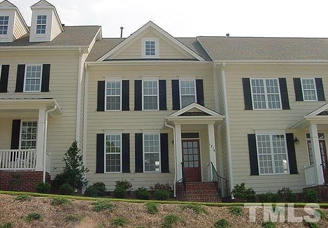 Available 9/4. Beautiful townhome in Heritage Wake Forest-A golf course community with shopping, restaurants & more just minutes away! Lovely hardwood entry, living room w/gas fireplace & niche for entertainment system, hardwood in dining & gourmet kitchen w/birch cabinets, upgraded appliances & bar top for extra seating, 2 bedrooms up (each w/private bath), walk-up attic for storage, private fenced courtyard w/patio & alley accessed detached 1 car garage. Note--SQ Ft has not been verified
