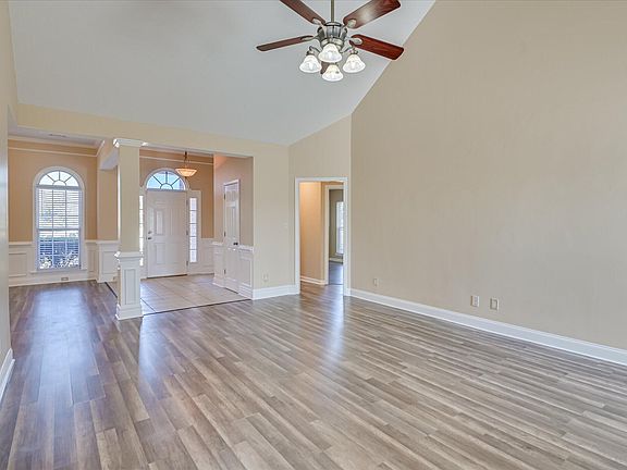 Welcome to this freshly painted move-in ready 4 bedroom, 2 bath ranch in Walton Farms with no HOA. Offering nice curb appeal in a cul-de-sac, this home features an inviting foyer, high ceilings, updated lighting, ceiling fans, and a cozy gas fireplace that flows into the formal dining area. The eat-in kitchen is filled with natural light and overlooks the backyard, perfect for casual meals. The spacious owner's suite includes a jetted tub, separate shower, dual vanities, and walk-in closet. Three additional bedrooms and a second bath are located on the opposite side of the home for privacy, one with large bay windows ideal for an office or playroom. Additional features include a freshly painted two-car garage, new water heater, and two pull-down attic accesses for extra storage. Outside, enjoy a fenced backyard with patio and with sprinkler system in both the front and back. This home is ready for you to make it your own! Conveniently located just 10 minutes from Gate 5 at Fort Gordon and close to shopping, dining, the airport, and major highways.