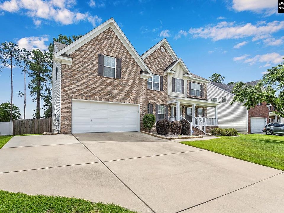 Beautiful well maintained Brick front 4 bedroom home! Location is close to the sandhills shopping center and restaurants. This home has been known as a popular local builders plan The Heritage. As you approach the lush green grass front exterior you will also notice the inviting front porch. The two story foyer has hardwood floors and can be seen from the balcony above. The formal living has french doors and the formal dining offers hardwood floors. This home is very clean and move in ready. There is also updated light fixtures. The kitchen is appointed with stained cabinets and new stainless steel appliances. As you past the eat in kitchen area you will love the large laundry room spacious enough for a extra freezer. The family room offers a gas log fire place. Upstairs you have 4 bedrooms that include the spacious master with a sitting area. The master bath has seperate vanitys. There is a garden tub and a seperate shower. And WOW the his and her closets are like none other. You can use the front one for a office or exercise room. The secondary rooms have walk in closets and ceiling fans as well! The privacy fenced back yard is very spacious! There are community ammenities that include a pool, tennis courts and a playground. One of the best ammenities around! This well maintained home will not last at all it has to offer.