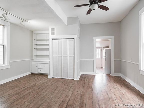 This cute 2BR/1BA home has just been completely renovated! Conveniently located within walking distance of New Albany High School and minutes drive from Charlestown Road, it has a spacious living room and dining area; both with built-in shelves and new flooring. TONS of cabinet space in the kitchen along with brand new appliances, deep stainless steel sink, and new flooring. Bedrooms feature ceiling fans and brand new carpet. MOVE-IN READY for you or your renters! Some of the photos in this listing have been virtually staged to help you envision the full potential of the space.
