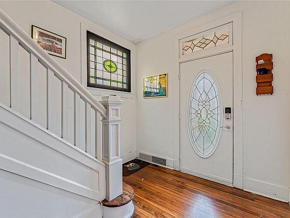 Wow! The appeal only begins at the curb. Enjoy the large covered front porch before entering through the beautiful leaded glass front door. Hardwood floors throughout* Ceramic decorative fireplace* Spectacular renovation creates a large open kitchen painted the most amazing color of blue! Stainless steel appliances, loads of natural light, brushed gold fixtures and charming built in cabinets. Dining room with door leading to magnificient fenced yard. Calling all dog owners! Extra off street parking added will fit 3 cars plus the on street parking. Generously sized remodeled full bath, Second floor laundry and an additional decorative fireplace in front bedroom. Large basement area for storage. Toilet and shower ready to go! Convenient location within walking distance of Beverly Ave which features shops, restaurants, ice cream store and much more. Commute to Pittsburgh in minutes or take public transportation located just steps away. A short walk to the park as well!