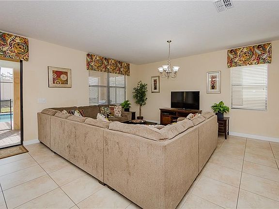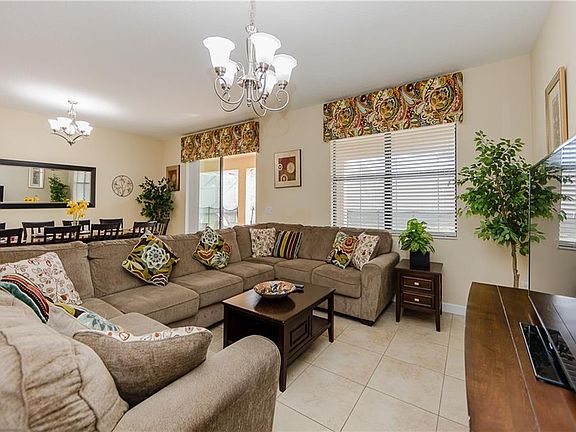 Luxury and well appointed, and Energy Efficient!! That is the only way to describe this open and spacious 9 bedroom 5 bath home located in the Luxury Guard Gated Community of Champions Gate. The magic begins as you step inside the door with the large and open Living/Dining Room area and the open Kitchen with hardwood cabinets, granite counter tops and stainless steel appliances. Enjoy a family breakfast by the oversized heated pool and spa that is South Facing and Private. There is a First Floor Master and a second bedroom on-suite on the first floor. The second floor has a Large Loft with a large Flat Screen TV for the family's pleasure. There is a second Master Bedroom on this floor with 6 more bedrooms. This home is being sold fully furnished and every bedroom has a flat screen TV. The CHAMPIONS GATE RESORT ORLANDO OASIS CLUB includes: Lazy River, Water-slides, Swim-Up Bar, Water Falls, Beach Entry, Spa, Splash Pad, Grill, Bar, Fitness Area, Theatre, Games Room, Tiki Bar and Cabanas. All these amenities, plus seven tennis courts are included in the HOA. Schedule your private viewing of this fabulous home today!!!