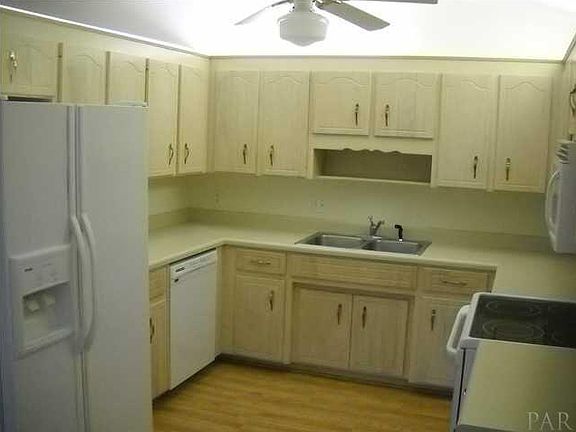 Located in the Muirfield section of Kings Road, this updated home has high ceilings,ceiling fans, fireplace and wood laminate floors in living area. Eat-in kitchen with updated appliances. Master suite has trey ceiling, ceiling fan and master bath with separate shower, double vanity and garden tub. Neutral carpeting in bedrooms. Privacy fencing and sprinkler system. Small pet on owner's approval