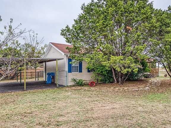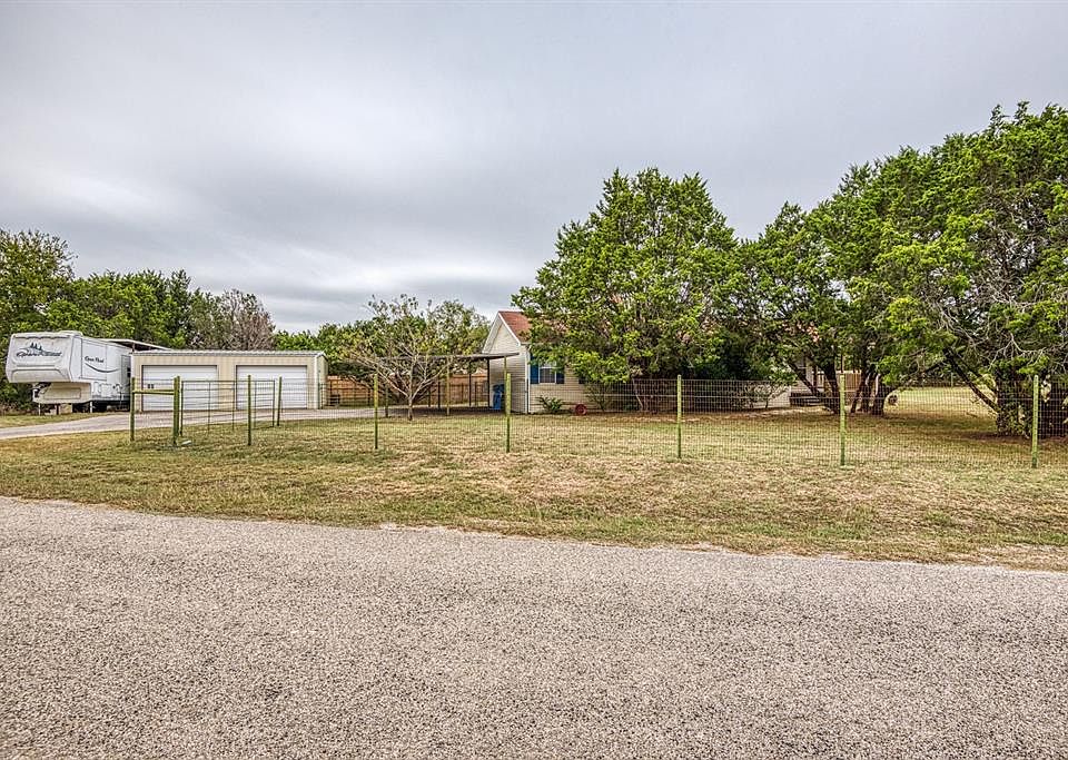 Neat, well maintained 1,664 sf., 3 bdrm. 2 bath manufactured home on small acreage on Ft. Worth side of Granbury. Dark blue shutters and wrap-around porch. Home is completely enclosed with a high, sturdy netwire fence for pets and security. Nice double carport with paved driveway and 24 x 30 metal two car garage with plenty of area for storage and a workshop area. As a bonus, garage has a an RV awning and charging station. New dishwasher, refrigerator and range in 2017. New gutters installed and septic tanks pumped in 2018. Ideal retirement home or starter home in the country but just minutes from major grocery stores, retailers, restaurants and quick access to Hwy. 377. Perfect home base for RVers. No HOA!