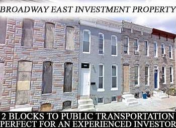 Owner Liquidation Sale!!- Broadway East "All offers will Be Considered" Only Blocks To Johns Hopkins Property is vacant and in need of renovations full renovations. 5 Bedrooms 1 Full Bathroom Full Basement. Ground Rent TBD Neighborhood Description Broadway East