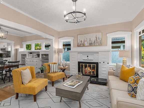 Gorgeous remodel keeping the homes classic style with modern flare! Reclaimed hardwoods, woodburning fireplace and eye catching "Foodies Kitchen" w/quartz counters, built in micro, pantry, and all new SS Appliances. With 3beds on main and an expansive 18x33 private primary suite upstairs boasting with room for walk in closet & additional sitting area! Tuck-under garage and partial finished lower level w/boundless possibilities. Charming yard, multi-level deck. Wonderful location. [Home Energy Score = 1. HES Report at https://rpt.greenbuildingregistry.com/hes/OR10201962]