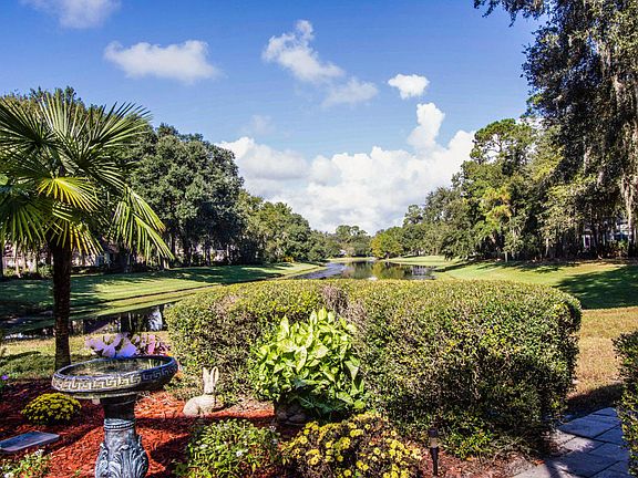 One of the most beautiful Pace Island Gardens Lagoon lots with privacy. You can not see homes behind or in front of you. 1/2 acre lot, 3 car side entry garage w/built-ins, & circular driveway. Light and bright home w/ amazing transom & palladium windows, & crown molding. Large family room w/vaulted ceilings and fireplace w/ built-ins. Plantation shutters in the front rooms of the home. Huge 670sf screened Lanai w/pavers, & fenced yard. 27x22 sunroom overlooks the 1/4 mile long view of the lagoon. 5 HUGE closets for storage and an enormous Master Suite. A large laundry room, NEW ROOF to be installed and air conditioners have been recently replaced. Other upgrades include recessed lighting, Jenn air appliances pull out drawers.24 hour manned gated community. A schools, 2 pools, tennis.