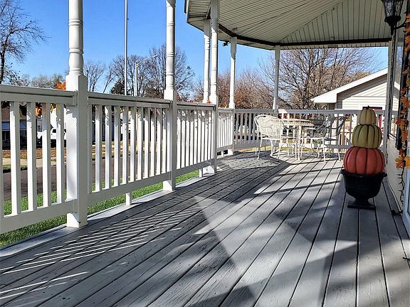 Welcome Home! Breathtaking 1.5 Story home that is sure to impress! Inviting wrap around porch is perfect for rocking and relaxing. Old world charm plus many modern amenities! Tall ceilings, original hardwood floors, glass door knobs, arch doorways, window transoms, 2 beautiful fireplaces, french doors & lovely arched staircase are some of the charming features! Beautiful kitchen w/ lots of cabinets, breakfast bar, pantry, desk area & pass through w/ arch accents. Large mud room at the rear of the home PLUS main floor laundry room. Master bedroom has connected walk in closet & beautifully remodeled bathroom in 2021! Upper level offers 3 bedrooms (one leads out to deck with stairs to yard), full bathroom plus great attic space perfect for finishing! Nice clean basement is great for storage. Fenced in backyard w/ large patio. New roof shingles on house & garage in 19', family rm carpet, main floor laundry and main floor bath in 21', driveway & patio in 11', furnaces & C/A in 09' and 10'