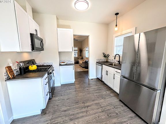 Beautiful, professionally remodeled home now for sale! This 3 bed, 1 bath has a gorgeous new kitchen with stainless steel appliances and a sunny attached dining area. The bathroom is well done with great finishes. Tall ceilings throughout the main level of the home. There is a new third bedroom in the basement with a large egress window. Plumbing, electrical, furnace, hot water - all updated and new. There are big shade trees, a nice lawn, off street parking for at least three vehicles and a detached wood-floor garage. Don't miss this quality home!