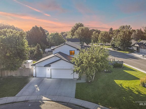 This beautiful home located in central Eagle on a quiet cul-de-sac on a corner lot has Beautiful hardwood flooring throughout includes new carpeting in bedrooms. Open kitchen w/ counter breakfast bar with window looking into the large backyard, new appliances. New water heater, paint, toilets, sinks, faucets, and roof replaced in 2015. Enjoy a huge master suite, dual sinks, large soaker tub, & separate shower. Mature landscaping, RV parking, huge covered patio, heated garage and more!