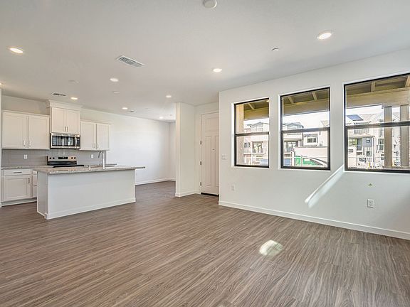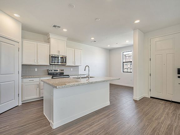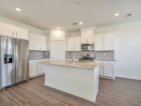 Synergy Plan 3, 2065 sq.ft, 4 Bedroom, 2.5 Bathroom. Downstairs has open concept with 2 living areas, the great room and dining area. 1 full bathroom and bedroom downstairs. The kitchen has a walk-in pantry, large granite center island with bar, stone gray cabinets with granite countertops in the kitchen and Chrome accessories. Upstairs you will find 2 bedrooms, plus the spacious primary bedroom suite, laundry room and 2 bathrooms.The flooring is luxury vinyl plank on entire first story and upstairs hallway, baths and laundry. Carpet in the upstairs bedrooms and stairway. West Facing | 2660 sq. ft. lot