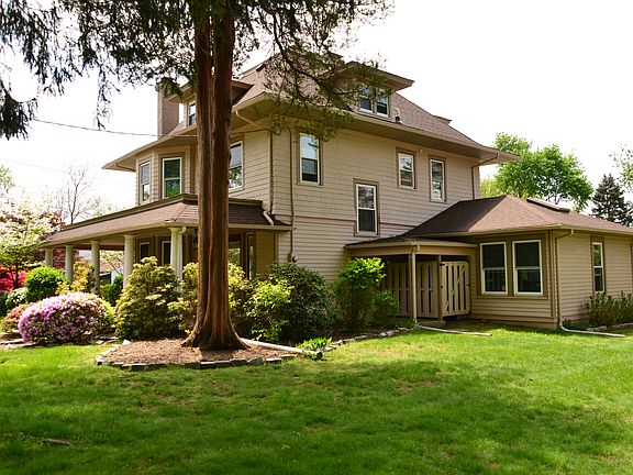 Meticulously maintained Victorian Colonial! 2 full baths, 3/4 bedrooms, bonus space in attic. Wrap around porch, golf course view! Updated kitchen w/ss appliances, open floor plan, family room. Timeless gem w/today's modern day conveniences, old world charm of yester-year. Original glass front door, LR w a field-stone front fireplace, stained glass win, oak floors, high ceilings, chestnut trim. French doors. Eat-in kit, granite counter tops,center island,built-in pantry, ss appliance.private back, deck. Bonus space, two car garage, whole house water filter system plus reverse osmosis for drinking water, 1 year AHS Buyer?s Home Warranty!