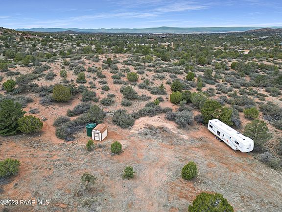 Five tranquil acres. no HOA. Underground electric and fully functioning well and well house. Terrain suits horses and farm animals. Subdivision zoned for minimum 4-acre plots. 2500 gallon freshwater tank. 80 ft. ridge on the property gives 360 degree mountain views all the way to the San Francisco Peaks in Flagstaff.