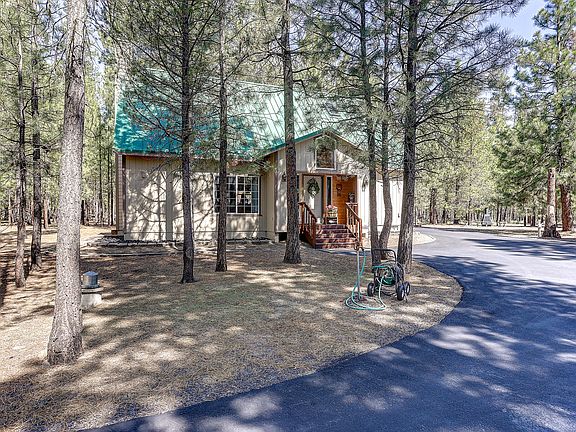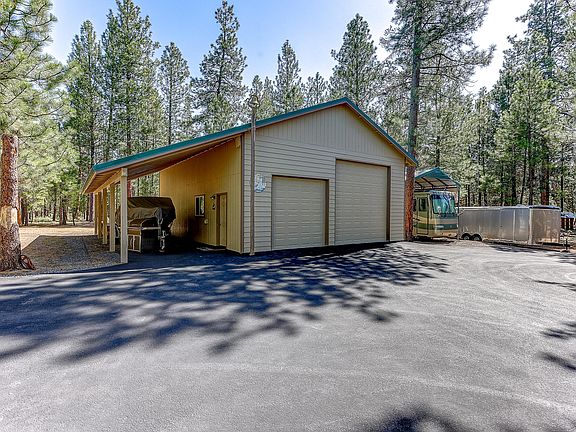 Huge Price Reduction!! This Chalet home is located in Ponderosa Pines, very well-kept home that adjoins the large common area, with easy access to public land. Lovely built with one bedroom up, and one bedroom down. Warm up on those chilly evenings with propane gas freestanding stove on the rock hearth, gaze up at the warm woods, used in the cathedral ceiling. Also has a split unit on main floor for heat/AC. home offers a lot of natural lighting from the large windows located throughout the home. This property is 1.45ac park like setting with private back deck. This property is nicely treed. Don't forget to look at the amazing shop 30x40 that is fully insulated, and sheet rocked. shop has two overhead doors, one 1ft, with lean-to off the shop. There is a large RV cover and shed out back. Old log kids playhouse. Home & Shop have metal roofs. Driveway is asphalted.