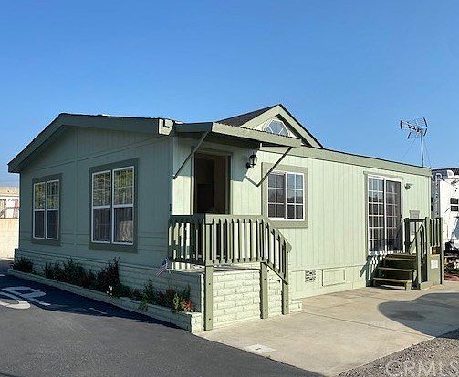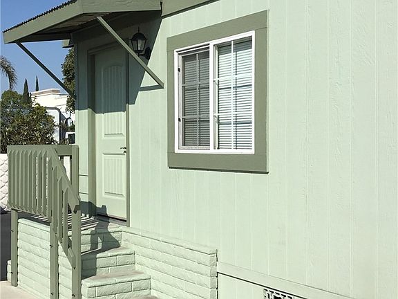 This charming 2 bed/2 bath home is located in Le Chateau Estates and comes with a dedicated parking space for 2 cars. The mobile park community is tucked behind the storefronts on Beach Blvd, it has a great location while also feeling very private. Vaulted ceilings and large windows gives the home a bright and airy feel. The kitchen comes equipped with range/stove, tile-style laminate floors, and it opens to the living area making it a great space for entertaining guests. Living room features a beautiful skylight window. Private laundry room off the hallway with washer/dryer hook-ups. Master bedroom has a bright sliding glass door and its own bathroom. The home has been lovingly maintained and is move in ready. Both the exterior and interior have been newly painted. Home is located in a prime spot toward the front of the mobile park with no neighbors to the left of you or in front of you. Conveniently located off the 405 FWY bordering Huntington Beach and walking distance to Bella Terra Shopping Center. This peaceful community is the place to call home!