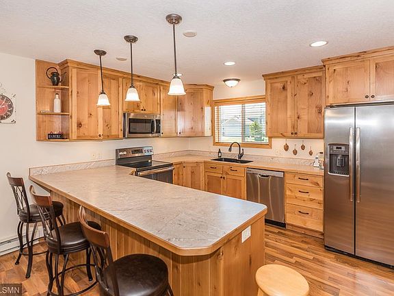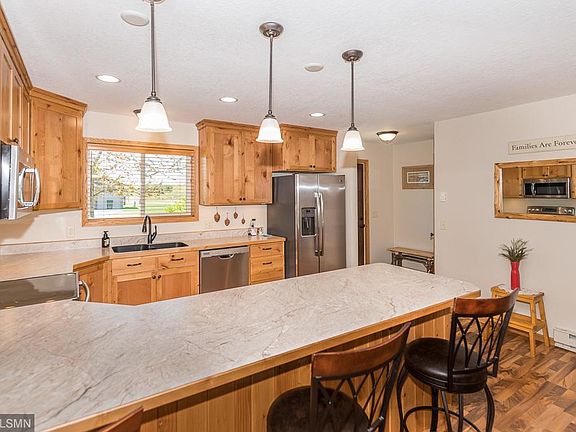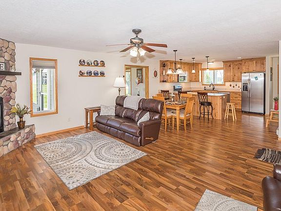 This main level living home features a corner lot with an extra buildable lot, tiled entryways, handcrafted knotty alder cabinets, expansive breakfast bar, stainless steel appliance package, custom window treatments, natural gas fireplace, sunroom with t&g vaulted ceiling, private master full bathroom with walk-in closets, newer carpet in all bedrooms, fresh paint inside and exterior, LED lighting throughout, main floor laundry, Daiken ductless air condition with supplemental electric heat unit, patio, landscaping, Shed, a recently seal coated driveway leads to an insulated heated garage. All this with no association fees!