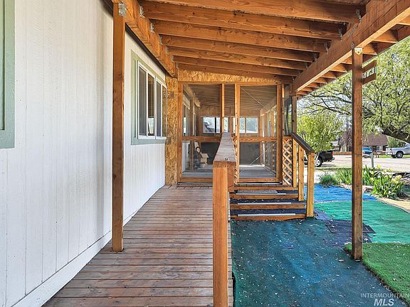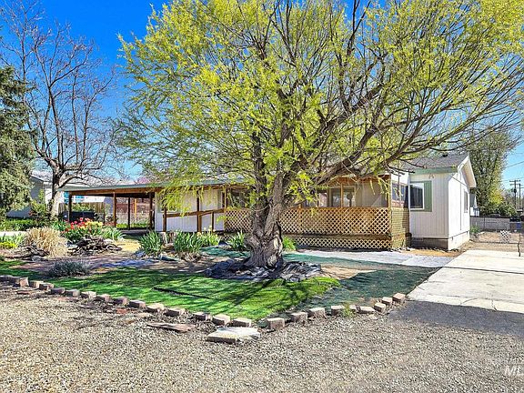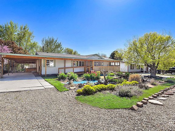 Amazing property Just reduced! Shows Pride of ownership & low maintenance. Manufactured home on foundation has been updated, painted & gorgeous deck added to improve the value & curb appeal. Home has many ADA features -there is a lovely ramp for the front access & shorter stairs for the back entrance. So many extra details of the home - must see to appreciate. 3 bedrooms, 2 baths - separate living & family room areas. Entire flooring has been redone with laminate for easy access with a walker - could easily accommodate a wheel chair but the doorways are not 36" wide. Primary suite features a walk in closet, nice windows for natural light & a slight ramp rise into the roll in shower area. Grab bars are in place in both baths. Custom archways & upgrades through-out with newer lights & 4" wood trim -lovely accent colors. Outside includes indoor outdoor carpeting & artificial turf - no weeds - lovely perennial bulbs for color & beauty. Fully fenced perimeter, gazebo & large shed. 12' RV parking on side- +Carport!