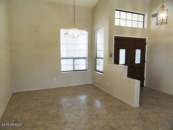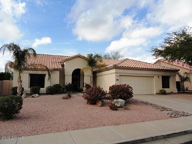 This fantastic, Move-In-Ready, home is priced low to sell! Spanish arch, covered entry and clean desert landscaping add to the appeal. Upon entering the living room you''ll notice the dramatic vaulted ceilings, beautiful 21 inch tile laid on the diagonal, the stunning 2 way floor to ceiling fireplace between the living room and family room, and the perfectly situated formal dining area. The gourmet island kitchen with breakfast bar features beautiful granite countertops, decorative tile backsplash, upgraded raised panel cabinets, recently installed Stainless Gas Stove, and the Stainless Refrigerator is Included. Separate, light and bright, Breakfast room, off of the kitchen. The kitchen overlooks the Family Room with 2 way fireplace, perfect for entertaining. (SEE ADDITIONAL REMARKS)