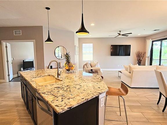 Gorgeous second floor lake view in perfect North Naples location! AVAILABLE FOR 2026 SEASON -- OR LONGER! Enjoy comfortable designer furnishings to make your stay easy and relaxing. Neutral colors. Tile throughout. Main bedroom offers a king size bed, large bathroom with glassed shower and dual sink vanity. Sizeable walk-in closet. Second bedroom has a queen size bed and walk-in closet. Den has sofa bed. Large second bathroom with tub and shower. All rooms have televisions. Watch sunset from the lanai. Rental fee includes monthly cleaning. Livingston Lakes, a gated community nestled in the heart of North Naples, offers the ease of condominium living with resort-style amenities. With only 230 homes, this charming neighborhood provides a sense of intimacy and community. Enjoy a sparkling pool with lap lanes and cabanas, two convenient built-in gas grills, a stylish clubhouse with a catering kitchen, a state-of-the-art fitness center, and a cozy outdoor fireplace and fountain. Just steps away from North Collier Regional Park, offering miles of scenic nature trails, premier sports facilities, a thrilling water park, and Golisano Children's Museum. Plus, you're less than five miles from the breathtaking white sand beaches of the Gulf. Endless shopping and dining options, and convenient access to I-75 and multiple international airports.