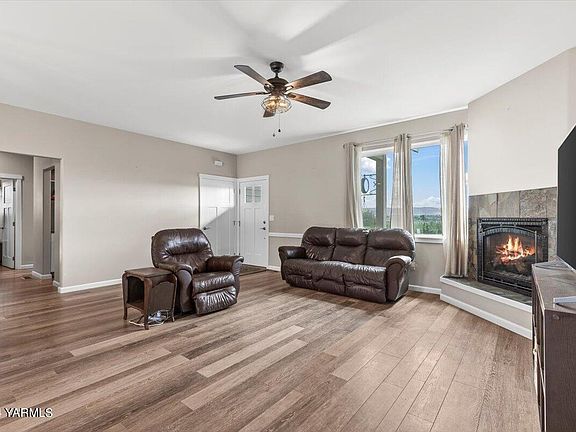 Welcome to this custom-built 1788 square foot newer construction home! Situated on a spacious 1.81 acre plot of land, you will delight in the direct views of Mt. Adams and the beautiful territorial views of the Yakima Valley. Meticulously crafted with attention to detail, this home boasts a custom floor plan that maximizes space and functionality. From solid core interior doors, fully insulated interior walls, a tankless hot water tank and Kinetico water softener, and ADA door/hallway openings, every corner reflects thoughtful design and superior craftsmanship. The heart of the home is a spacious living area that seamlessly integrates the living room, dining area, and kitchen. This open layout is enhanced by natural light streaming through large windows and a delightfully large granite kitchen island that is perfect for entertaining. To add to the custom touches, the added butler's pantry and massive walk-in food pantry, are sure to inspire your culinary creativity! Retreat to your primary suite, located opposite the other 2 bedrooms, and enjoy a lavish ensuite bathroom and generous closet space. Features include a stone walk-in shower, large soaking tub, and dual sinks set in a granite countertop. The 2 additional bedrooms are perfect in size and comfort, and the guest bathroom is equally as elegant as all of the rest of the spaces in the home. You also won't want to miss the fabulous dog washing station in the laundry room! This creative touch is sure to bring enjoyment to both you and your furry pets! Finally, step outside and enjoy your large wooden deck, with a separate pad and electrical hook-up already in place for a hot tub. Your opportunities are endless as it has full irrigation water to the property, ample space to build a shop or store all of your toys, and the ability to dream up your next adventure. Call today for a tour!