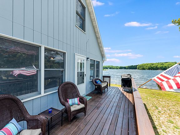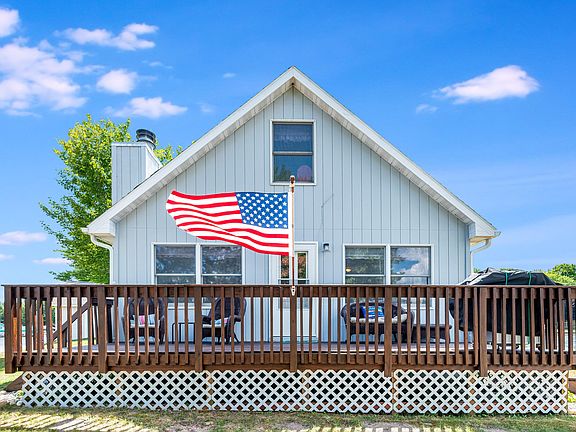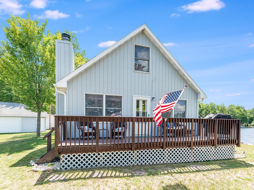 WOW! Surrounded by water, a beautiful sandy beach, & gorgeous views, this absolutely adorable home on Sandbar Point is a must see! This TURN KEY property on all sports Rose Lake has 380ft of private lake frontage & sleeps 13 comfortably w/ room for more! Open floorplan w/ lake view from almost every room. Fireplace in living room, snack bar & pantry in kitchen, fresh paint throughout, & new flooring in kitchen/mud room. Home is listed as 2 bedroom, but the large open upper level is set up to sleep 8 or more w/ the 2 full & 4 twin beds just purchased by Seller included. Exterior has just been stained & new gutters & downspouts added. Large 24x26 garage w/ 9ft & 16ft door to store all your lake toys. Impressive sea wall w/ steps into the water, & dock included. A TRULY UNIQUE PROPERTY!