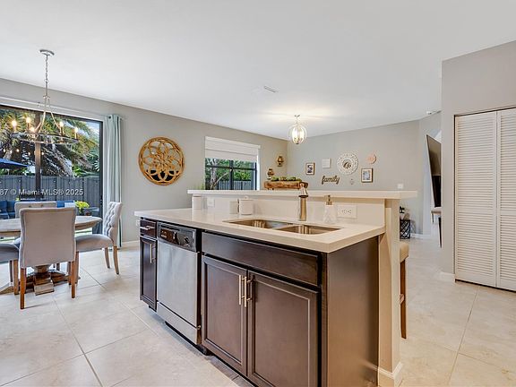 Stunning 5-bedroom, 3-bathroom, 2-story single-family home, built in 2016, features a modern design and functional layout. One bedroom and full bathroom on the first floor add convenience for guests or multi-generational living. The oversized backyard boasts an expansive entertainment area and additional space to build a pool, offering endless possibilities for outdoor enjoyment. The large primary owner’s suite is a standout feature, with a walk-in shower, a separate soaking tub, and a spacious walk-in closet that provides ample storage. This home is located in the desirable Hammocks community and combines newer construction with practicality and a prime location.