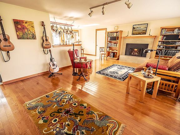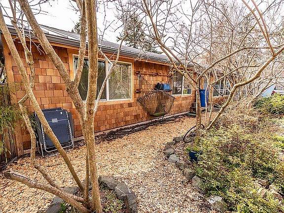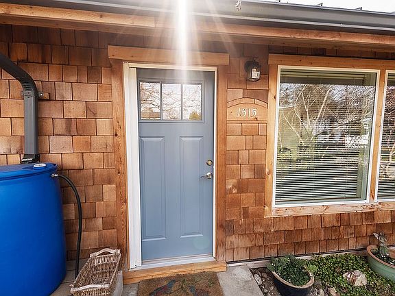 This light-filled home offers low impact, single level living in a friendly neighborhood just blocks from downtown. Open concept living area features wood floors, doors and trim, gas fireplace with tiled hearth and custom bookcases. Bedroom features custom fir closets, tiled bathroom with heated floor. Two additional rooms are currently configured as home offices. Attached 240 SF shop/storage space has separate entrance. New metal roof was installed 2013, grid tied 4.48 kW solar panel array added in 2016. The large lot features a fully fenced deer-proof back yard including hen house, extensive raised bed garden and established fruit trees. Central location within easy walking and cycling distance of schools, library, hospital, senior center, commercial district and community forestlands.
