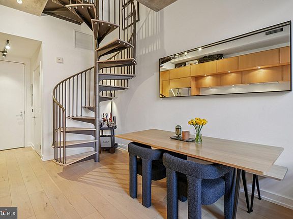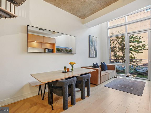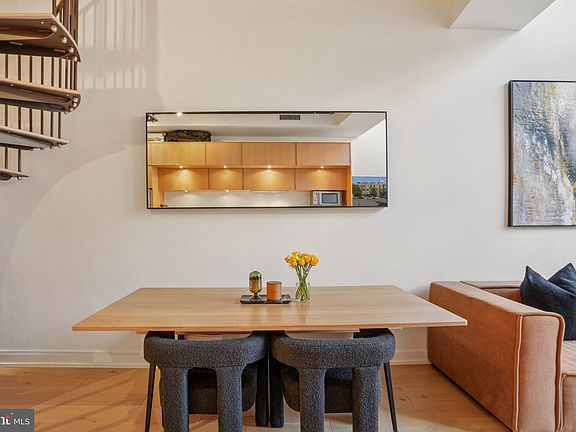 An expression of refined urban living, this two-story loft residence at The Metropole embodies serenity, sophistication, and architectural integrity at the heart of the city. Designed for both beauty and efficiency, the residence harmonizes soaring volume with organic materials and light-filled space. A dramatic eighteen-foot wall of glass anchors the home, inviting natural light to pour in, framing the residence with an ever-changing interplay of light, texture, and cityscape. The main level flows with ultra-wide plank hardwood flooring and a custom kitchen by Cecconi Simone Interior Architects of Toronto, featuring furniture-grade cabinetry, quartz countertops, integrated lighting, and a new Bosch refrigerator. The open layout seamlessly connects living and dining areas, creating an atmosphere both modern and effortlessly inviting. Upstairs, the lofted primary suite offers a private retreat, complete with an Elfa-organized walk-in closet and a spa-inspired bath with an oversized walk-in shower and private water closet. A Bosch washer and dryer complete the suite. Every detail has been curated for balance, comfort, and enduring style for efficiency. This residence includes a full-sized parking space and access to The Metropole’s distinguished amenities: full-time concierge service, secured package reception, dual elevators (including loading dock access), two furnished guest suites, and an outdoor lounge with grilling area. Designed by RTKL Architects and completed in 2008, The Metropole remains a hallmark of contemporary design, where art and architecture converge. The lobby showcases an original installation by Margaret Boozer, complemented by rich wood finishes that echo the building’s modern organic aesthetic. Located steps from Whole Foods Market, VIDA Fitness, Call Your Mother Deli, South Block, Trader Joe’s, and the acclaimed dining and retail of the 14th Street Corridor, this central address affords effortless access to every urban convenience — just minutes to DCA and Union Station. A rare opportunity to experience tranquil sophistication in the very center of the city.