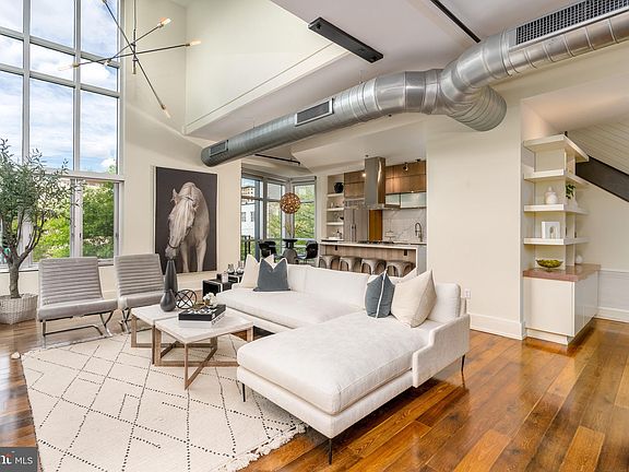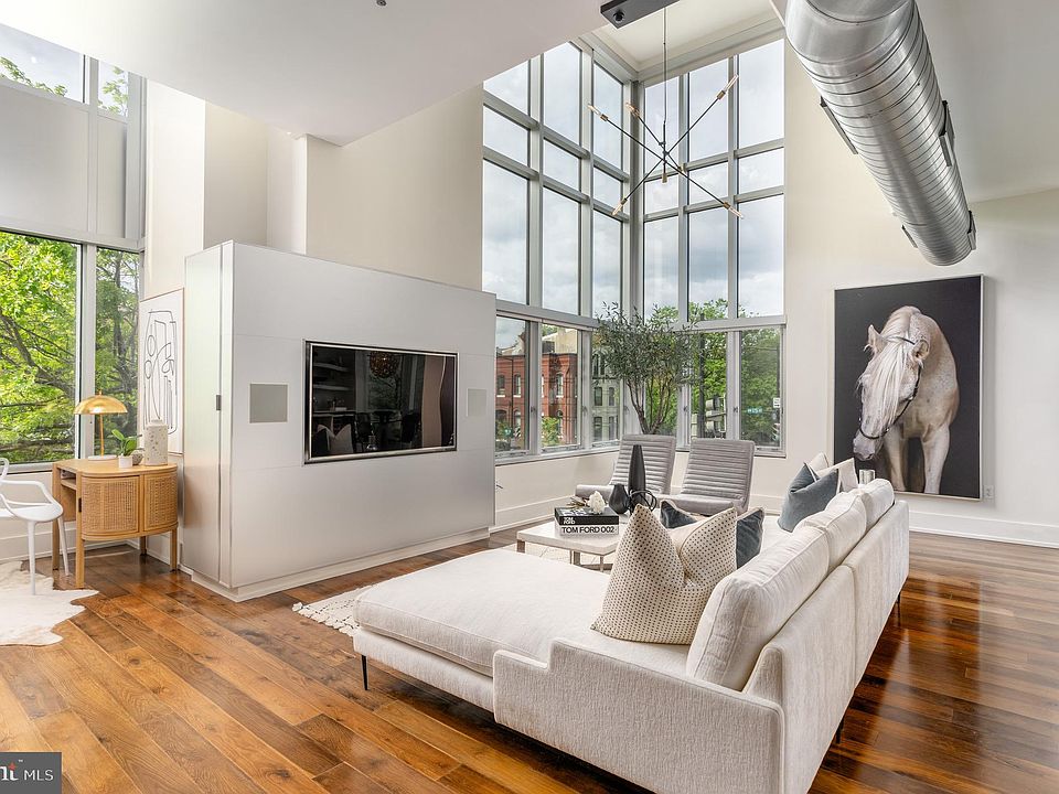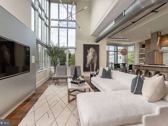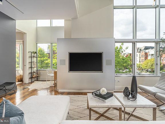 Perfectly positioned between Dupont and Logan Circles, this 3 Bed/3 Bath urban-industrial loft with the show-stopping grandeur of a luminous penthouse invites you to live your dream at the Metropole. An entertainer’s dream, this home is sure to impress lucky guests as they admire the open plan living area, with cathedral ceilings and nearly floor-to-ceiling, sound dampening windows to match. The space is flooded with natural light throughout the day courtesy of southern and western exposures overlooking the lively corner of 15th and P Streets. Warm wood flooring and cabinetry contrast starker architectural details in concrete and stainless steel to create a modern, refined, yet welcoming space. Integrated and stainless steel Bosch appliances, including gas range, along with updated quartz countertops unite for a seamless kitchen design fit for television, providing uninterrupted views to the living and dining areas. The dining area’s adjacent Juliet balcony is the perfect perch for taking in views of the Washington Monument and people watching below. A first floor bedroom offers the opportunity for a secondary living room, office, or home gym, while upstairs, two larger bedroom suites present two distinct characters, each with ensuite bath and walk-in closets. The primary bedroom, overlooking leafy 15th Street, exudes the inviting serenity of a boutique hotel, boasting a signature Metropole bay window sitting area with additional Monument views, frameless glass shower, double vanity, separate water closet, and convenient in-unit laundry. The secondary bedroom exhibits the home’s loftier qualities, allowing one to admire the living areas below, as if from the heights of a cathedral gallery, as well as the city views beyond, with tub shower and single vanity. The Metropole extends all the luxury amenities one expects to its residents, including full-time concierge, a dedicated parking space in secure, underground garage, additional secure storage, an outdoor grilling, dining and lounge space, as well as discounted access to Vida Fitness located within the building. With Whole Foods Market just across the street and the seemingly endless restaurants, cafes, bars, and shops of 14th Street just around the corner, living the dream starts at your front door!