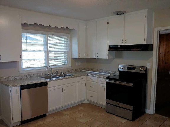 Corner lot with nice, big front yard. Remodeled kitchen, fresh paint throughout. Comes with stove/oven and dishwasher. Includes washer/dryer hookups. Has detached double garage.
