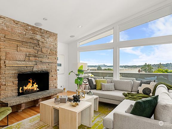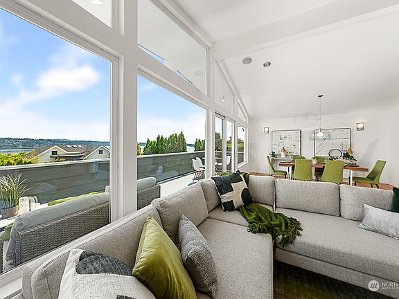Welcome to this stunning midcentury home with breathtaking lake and mountain vistas to start your day. Talk about front-row seats to the Seafair air show! You're just a block to Coleman Beach for a summer splash and Coleman Park for a serene woodsy stroll. Scrumptious amenities nearby include That's Amore, Heyday, Meet the Moon, Bluwater Bistro and of course the Leschi Market is handy. Vaulted ceilings and a wall of windows bring in abundant natural light. Thoughtful main floor layout with 3 bedrooms/2 baths. Downstairs, discover an almost ADU-ready level featuring a ginormous great room, a pre-plumbed kitchen space, separate laundry and two generously sized bedrooms. Spacious, private fenced yard for gardening or outdoor fun.