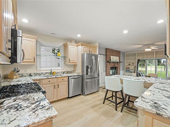 Beautiful, thoughtfully updated, and move-in ready, this 3 Bedroom, 2 Bath ranch situated in a serene, park-like setting in Hudson is truly something special. As comfortable as it is elegant, with charming built-ins and niches throughout. Welcoming floor plan offers relaxing flow for everyday living and easy entertaining. There are a number of spaces to gather with family and friends, from the sun-filled Living Room, the lovely Sun Room or Patio and large Yard, to meals and board games in the cozy Family Room with fireplace, and then, of course, there's the finished Rec Room with wet bar. The Basement also includes a finished office and generous unfinished space that's currently being used for a workshop, exercise area, and storage. There are washer and dryer hookups in the basement as well. Recent updates to this quality built home include: Maytag Washer and Dryer and First Floor Plumbing hookup (2023), A.O. Smith Signature 100 Hot Water Tank (2023), Refinished Hardwood Flooring in Living Room (2023), Luxury Vinyl Plank Flooring in Kitchen, Dining/Family Room, Hall Bath and Front Entryway (2023), Granite Countertops in Kitchen along with Large Undermount Sink and Disposal (2022), All New Hall Bath including vanity with marble top, soaking tub/shower combination, and polished marble tile (2021), All New Primary Bath including dual sink vanity with quartz top, shower with porcelain tile, and light fixtures (2021), and more! Ideal, central location is convenient to the area’s amenities. Schools, parks, hiking and biking trails, shopping, dining, entertainment, and more are all just minutes away! Commuters will enjoy easy access to Cleveland and Greater Akron. Home Warranty included. Schedule your private showing today!