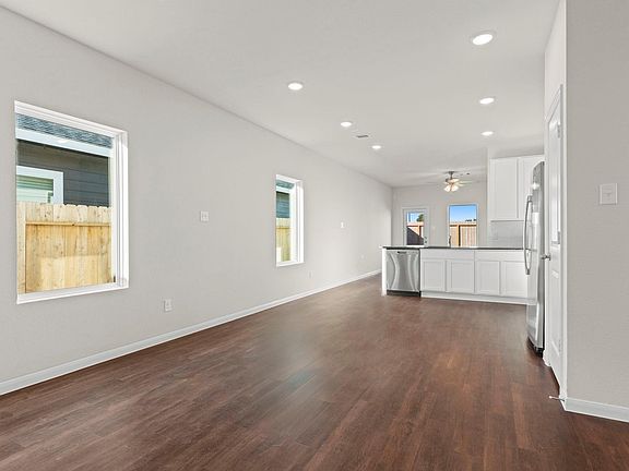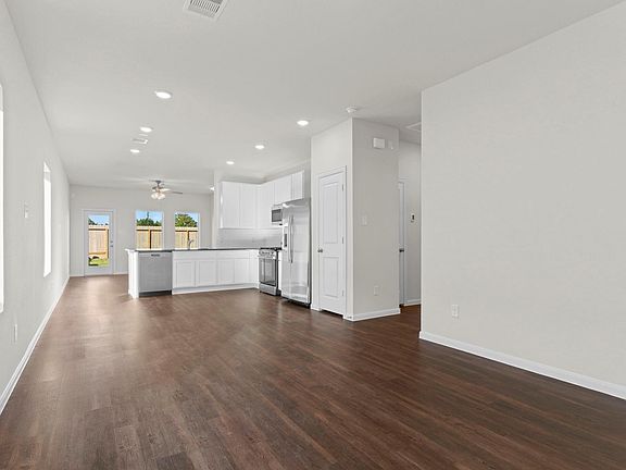 Beautiful new one-story ranch home by CastleRock Communities—The Oak Plan! Energy Star Rated with a Tankless/On-Demand H2O Heater! Energy Star rating! Welcoming entry with high ceilings & gorgeous vinyl plank wood floors flows through the main living areas. The dining area opens to a stylish kitchen featuring tall white shaker cabinets, granite countertops, a chic tile backsplash, stainless steel appliances, deep undermount sink, & a breakfast bar that connects seamlessly to the spacious family room overlooking the backyard. Refrigerator, washer, & dryer are all included! The private primary suite offers a spa-like bath with dual vanities, a Super massive shower, & a walk-in closet. Guest bedrooms are tucked away for privacy, complete with a second full bath nearby for added convenience. Located in Sweetgrass Village with parks, a clubhouse, pickleball courts, and a sparkling pool for year-round enjoyment! What a place to call home! No flooding during any of the storms! Move in ready