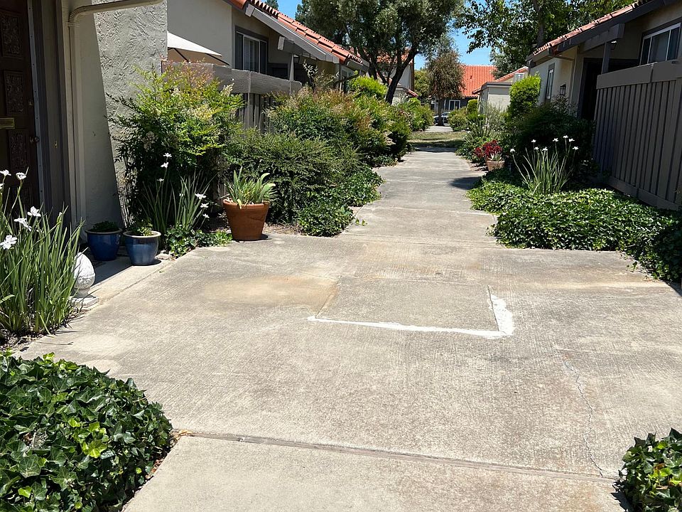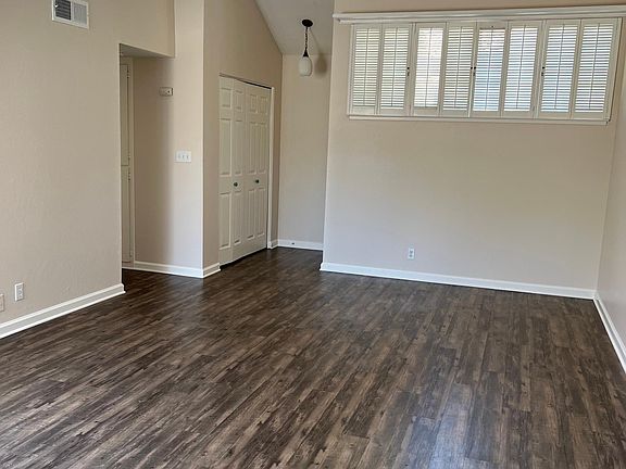 This is a unique and charming, contemporary 2 bedroom, 2 bath townhome. 2 car garage. The living room has a vaulted ceiling. Freshly painted and new flooring throughout. Private courtyard patio. Central heat and A/C. This complex also has a pool and cabana club for tenant's use. It is in a great location close to shopping, schools and community park. Walking distance to downtown Main Street. Easy freeway access to 680, 580 and Bart. This home is approximately 1000 sq. ft. Please call to make an appointment to view the interior. Thank you. PLEASE DO NOT TEXT.