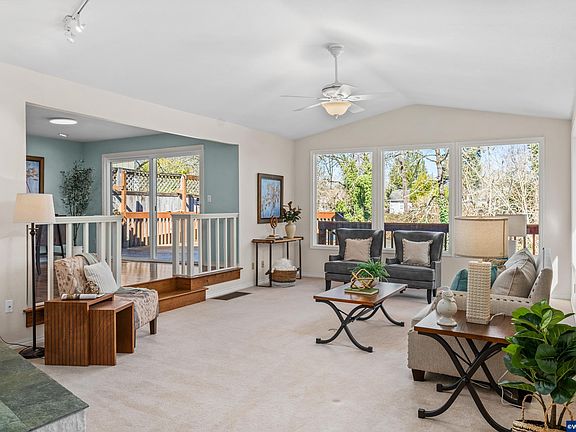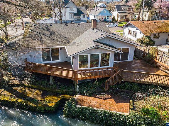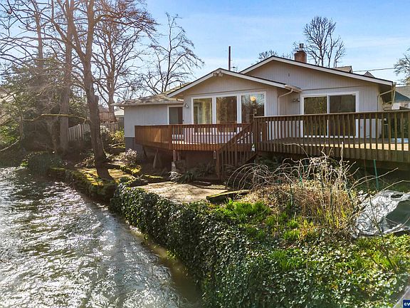 Rare single-level, well-maintained home on Mill Creek in unique established pocket neighborhood in the Court-Chemeketa historic district. 2 large bedrooms + office/3rd conforming 10.5 x 8.10 bedroom. Primary suite with a walk-in closet & built-ins. Offers scenic views from a spacious, vaulted ceiling living room with large windows and a gas fireplace. Large back deck and patios with creek access you can enter from either primary suite or dining area. Office alcove and pantry spaces off kitchen. Wood floors.