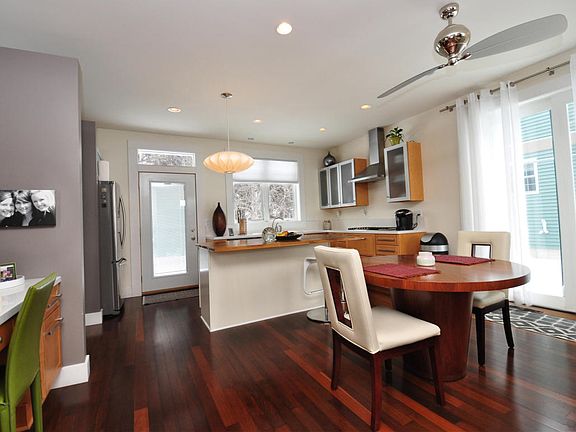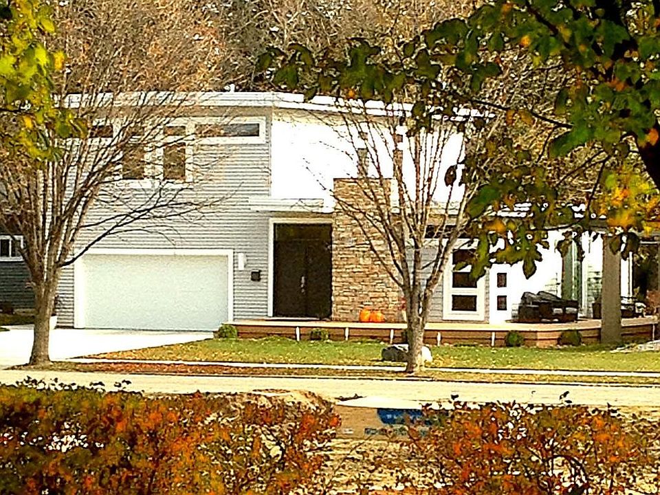 Modern mid-century home with unique architectural design & located in a desirable neighborhood. Open concept kitchen, dining area & living room w/ hardwood floors. Special features: art room, main floor laundry, stainless appliance,gas cooktop, gas fireplace, dimmers on all indoor lights, quartz countertops,Trex wrap around deck. Stand alone pergola, sprinkler system.