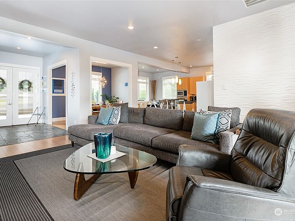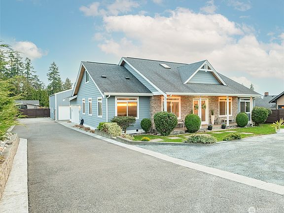 Outstanding opportunity for multi-generational living in this delightful Pacific Northwest contemporary home...2,854 sq ft 4 bedroom/3 bathroom main house + 40'x40' shop with 1,000 sq ft guest quarters. 10' ceilings set the tone and the light & bright open concept kitchen/living/dining design is warm & inviting. Luxurious main level primary suite features french doors to covered back patio, walk in closet & spa-like ensuite bathroom with modern soaking tub + tile shower. Wood floors, concrete & quartz counters throughout + heated tile floors in all 3 bathrooms...no carpet in entire house. The 14K+ square lot is ideal for boat/RV parking and features a custom backyard pergola & fenced yard with tons of space for entertaining or relaxing.