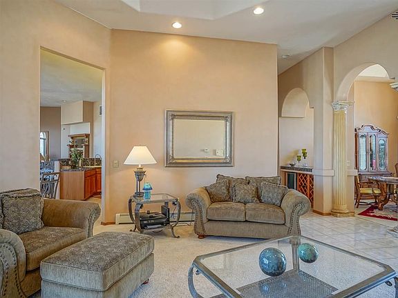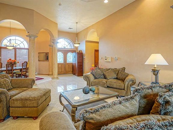 Breathtaking Panoramic Views accompany this over 4800 sq ft custom home, sitting at the end of Gallup's most desired cul-de-sac. This stunning home boasts 12 ft ceilings, a kitchen open to one of the 3 spacious living spaces, and each bedroom adjoins its own en-suite with a full bathroom! The master bedroom is a perfect retreat with a Jacuzzi tub, and its own private sitting room with a double sided fireplace. The down stairs walk out is perfectly suited for a game room, or a man cave and is the perfect getaway for kids or sports fans, and would also make a great mother in-law suite. You will never need to worry about somebody building behind you or blocking your views, this home comes with two acres! Make your appointment today to see this gem!!