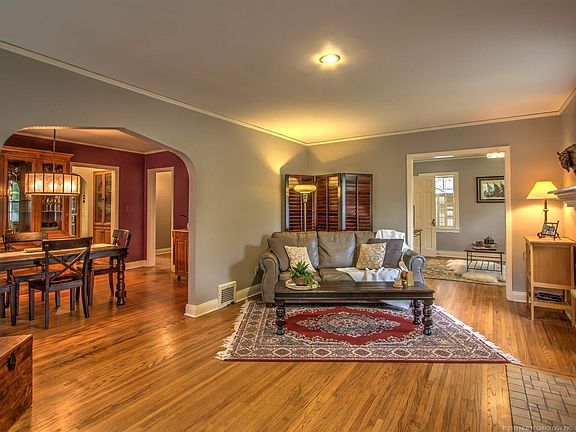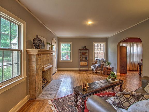 Charming Swan Lake bungalow with stucco exterior and great architectural details! Interior features include hardwood floors, original artisan tile on fireplace / hearth, updated hall bath, butler's pantry between dining & kitchen, laundry off kitchen, sunroom and partial basement. 3rd bedroom was opened to living at some point and features half bath and walk-through closet to 2nd bedroom. Great flagstone patio in back yard. Garage converted to studio.