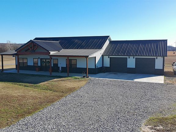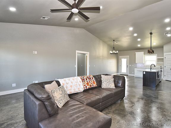 Step inside this stunning 2 yr old home set on 3.9 peaceful acres in Fort Gibson, where thoughtful design meets modern comfort. Welcoming solid wood double entry doors open into a spacious open-concept living and kitchen area, perfect for everyday living and entertaining. The kitchen is beautifully appointed with a large center island and farmhouse sink, soft-close cabinets and drawers, under-cabinet lighting, a walk-in pantry, and all new appliances that remain with the home.
