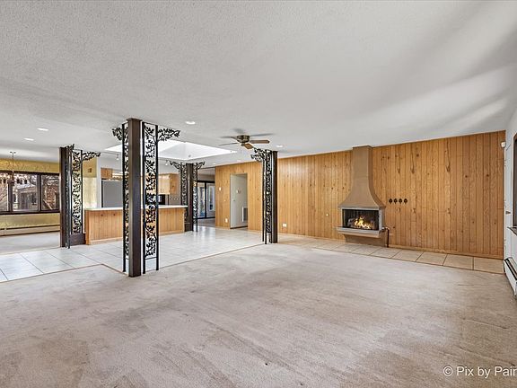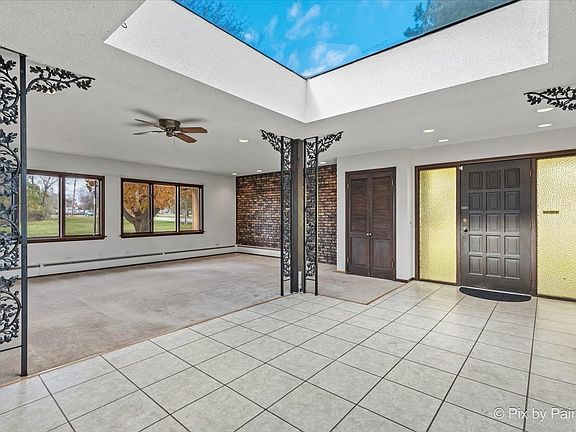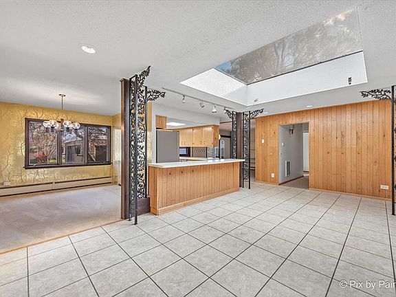 Welcome to 1515 East Main Street! This remarkable mid-century modern ranch home is a rare and timeless design by renowned modernist architect Earl Flansburgh, offering both distinctive character and functionality. Nestled on a sprawling 1.28-acre lot across two parcels, this property blends modern architectural design with serene living. Step inside to discover 2,000 square feet of living space above grade. The bright foyer, once an atrium option, sets the tone with skylights and expansive windows that flood the home with natural light, creating a seamless connection between the indoors and the outdoors. The main level features an open layout ideal for modern living. The kitchen anchors the home and opens to the cozy living room with a fireplace and versatile family room with a large accordion door, built-ins, and access to the spacious sun room. All of the bedrooms are conveniently located on the main level. The finished walkout basement adds even more living space, boasting a huge lower level family room, second retro-style kitchen, a bar, a full bathroom, a workroom, and abundant storage. The lower level family room opens to a private backyard with patio, where you'll find a fully functional above-ground pool and a deck perfect for summer gatherings. The property also includes a balcony overlooking the lush surroundings and a former dog run repurposed into a charming garden area. Additional features include a central vacuum system, expanded driveway, and the option for light business use, offering flexibility for those seeking a work-from-home space. This home is sold AS-IS, presenting a unique opportunity to own a one-of-a-kind property that you can customize to reflect your personal style. Great location, about 1/2 mile from charming downtown Cary, Metra train station, shopping, and dining. Whether you're drawn to the modernist design, the tranquil outdoor space, or the versatility of its layout, this property is ready to welcome you home. Schedule your private tour today and discover the possibilities at 1515 E Main St!