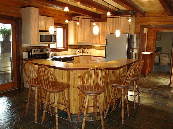 Seller Motivated. As you enter the majestic great room with the grand stone fireplace you will know you are home. This warm and inviting custom log home features: beautiful hickory cabinets, gleaming slate floors, stamped concrete patios and quality finishes throughout. Let peace and tranquility surround you in your private backyard garden oasis or screened sun porch. Abundant wildlife, nearby miles of riding/hiking trails and convenient location add extra bonuses to this beautiful property.