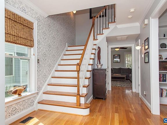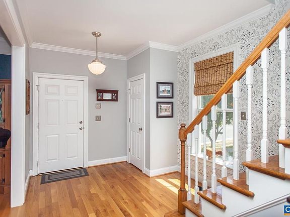 Light-filled, move-in ready home with custom updates throughout! A beautiful mahogany, wrap-around porch invites you to sit & relax with your morning coffee. Inside, find a spacious foyer, large living room w/ built-in shelving, formal dining room w/ porch entrance, a bright kitchen w/ gas range, glass cabinetry & large pantry, and a second dining area. The generous family room includes a propane fireplace & a large half-bath completes the first floor. Upstairs, you'll find 4 bedrooms, 2 full bathrooms & a laundry room complete w/ sink & storage closet. The master suite includes a substantial walk-in closet lined w/ shelves & a private full bath w/ jetted tub & shower stall. The terrace level has been partially finished w/ rough-in plumbing for future expansion. Currently it provides an opportunity for a home gym, rec room & storage. The detached 2-car garage includes built-in workbenches & additional storage space upstairs. The back deck is a cozy place for outdoor dining & overlooks the fenced-in yard w/ mountain views, extensive landscaping & space for entertaining, pets & play. Located on a tree-lined street just mins from downtown Crozet w/ an easy drive to parks & vineyards & less than 20 mins from Shenandoah National Park.,Glass Front Cabinets,Quartz Counter,White Cabinets,Fireplace in Family Room